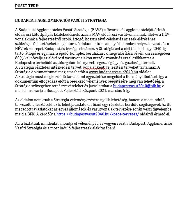 BUDAPESTI AGGLOMERÁCIÓS VASÚTI STRATÉGIA- Fejlesztések véleményezése