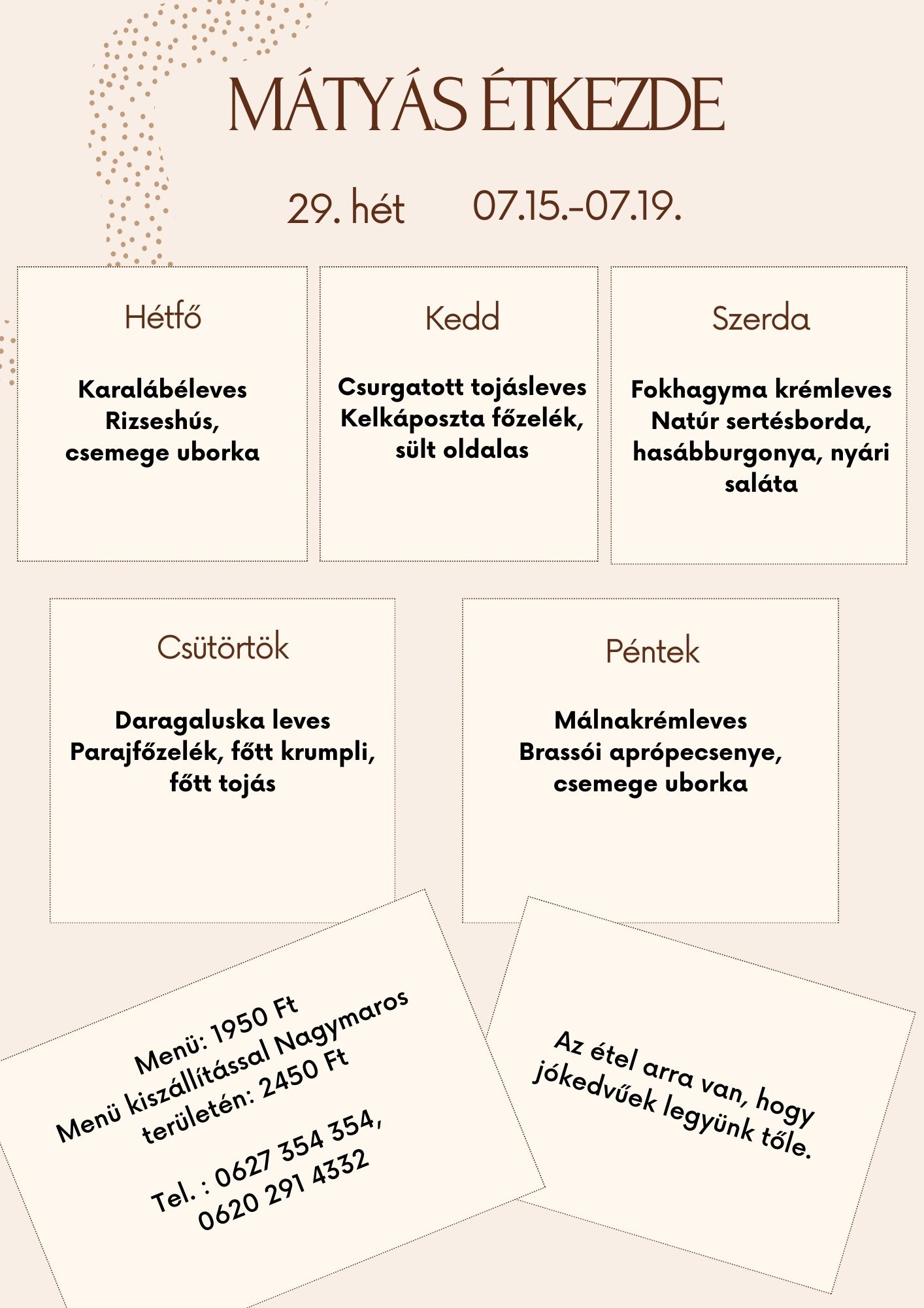 Étkezdénk heti menüvel várja a betérőket, melyeket az alábbi linkekre kattintva talál meg: