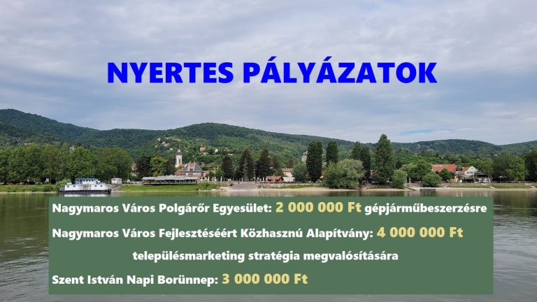 – Nagymaros Város Fejlesztéséért Közhasznú Alapítvány: 4 000 000 Ft településmarketing stratégia megvalósítására.