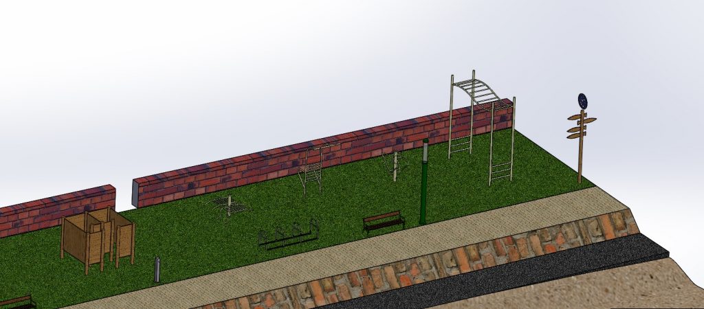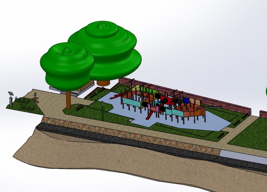 Vízimentő háza, nagy hajós játszótér, kis játszótér, fitnesz részleg látványtervei: