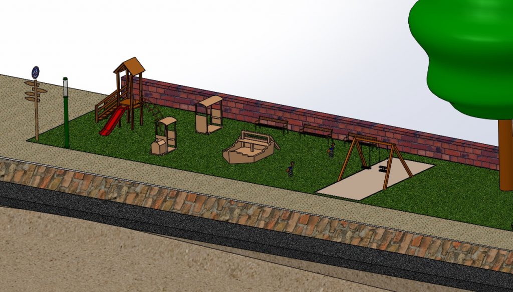 Először a játszótéri eszközök, ivó kutak, öltözők telepítése van folyamatban.